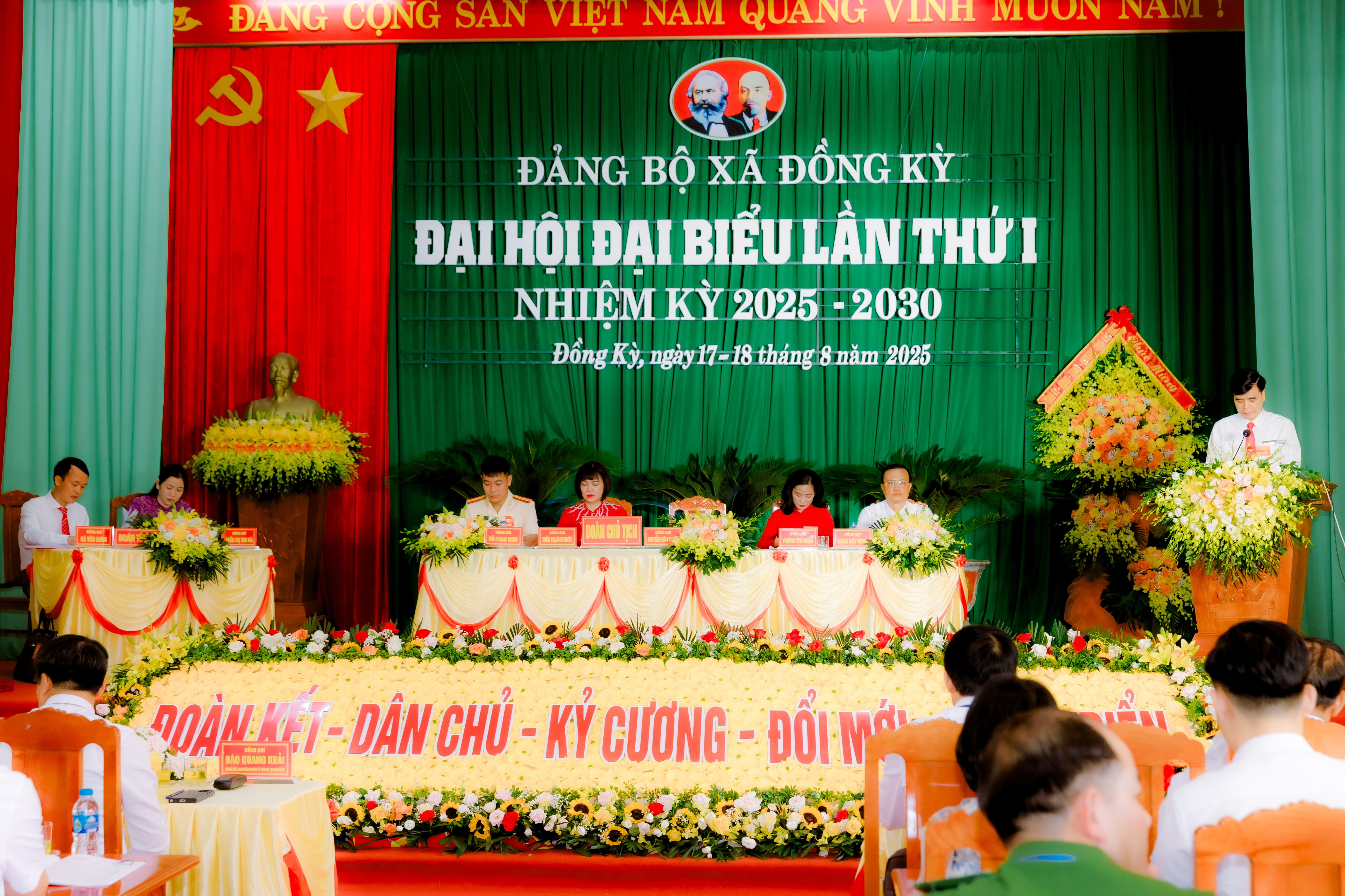 Trong 2 ngày 17 và 18 tháng 8, Đảng bộ xã Đồng Kỳ long trọng tổ chức Đại hội đại biểu lần thứ I, nhiệm kỳ 2025 – 2030. Dự và chỉ đạo Đại hội có đồng chí: Đồng chí Đào Quang Khải, Ủy viên Ban Thường vụ Tỉnh ủy, Phó Chủ tịch UBND tỉnh. Cùng dự có thành viên Tổ công tác số 9 của Ban Thường vụ Tỉnh ủy; lãnh đạo một số sở, ngành tỉnh; các đồng chí nguyên lãnh đạo huyện Yên Thế và các xã: Đồng Kỳ, Đồng Hưu, Đồng Vương (cũ) cùng 152 đại biểu chính thức đại diện cho 745 đảng viên trong toàn Đảng bộ.