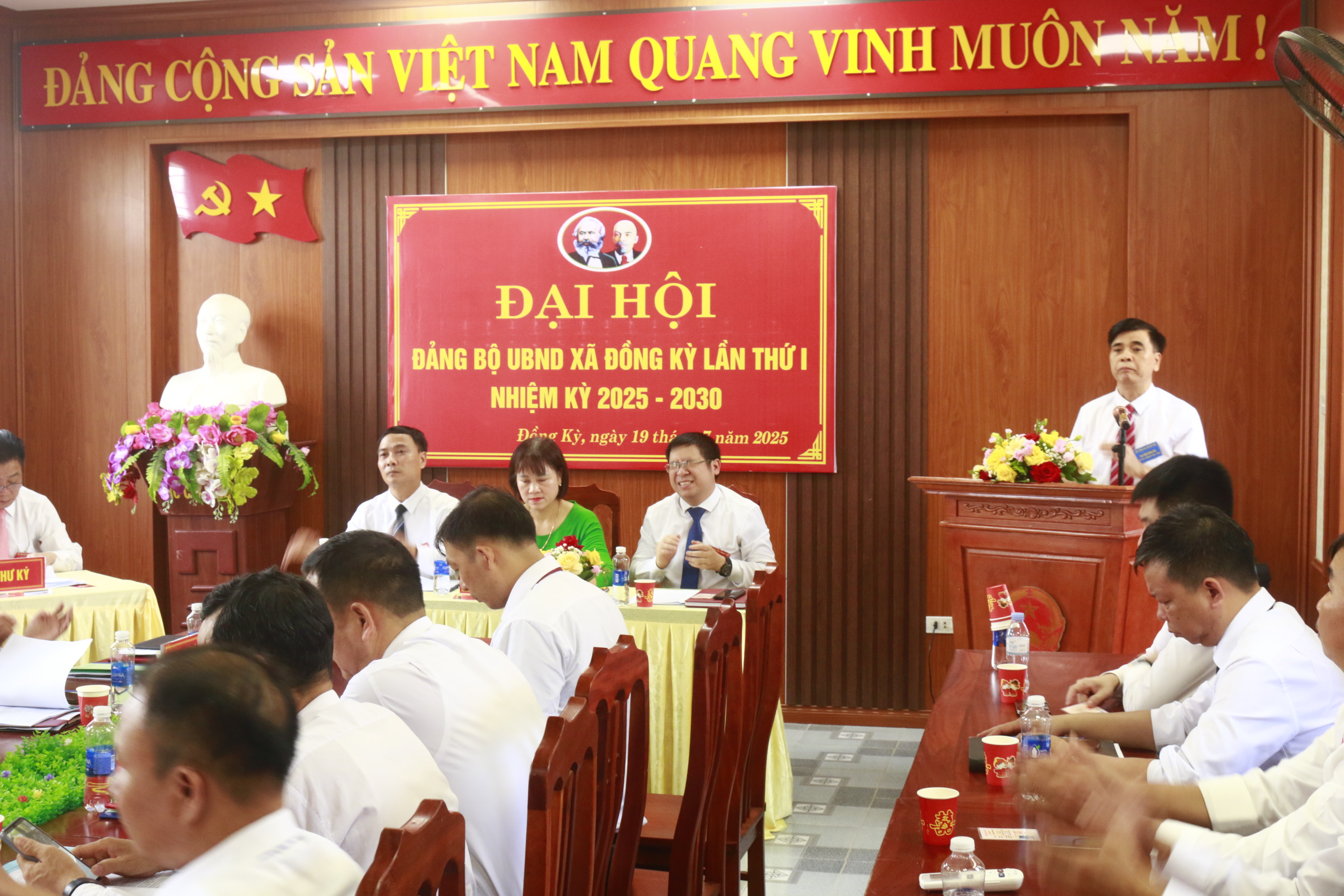 Đây là đại hội có ý nghĩa đặc biệt, diễn ra trong bối cảnh xã Đồng Kỳ vừa thực hiện việc sáp nhập đơn vị hành chính theo Nghị quyết của Ủy ban Thường vụ Quốc hội. Là sự kiện chính trị quan trọng, đánh dấu bước đầu phát triển mới trong quá trình xây dựng và trưởng thành của Đảng bộ, đồng thời thể hiện tinh thần đổi mới, đoàn kết, trí tuệ và trách nhiệm của toàn thể đảng viên trước yêu cầu nhiệm vụ chính trị trong giai đoạn mới. Vì vậy, tại Đại hội lần thứ nhất, nhiệm kỳ 2025-2030, Đảng bộ UBND xã đã tập trung cho ý kiến về phương hướng, mục tiêu, nhiệm vụ và giải pháp chủ yếu cho nhiệm kỳ đầu, nhiệm kỳ 2025-2030.