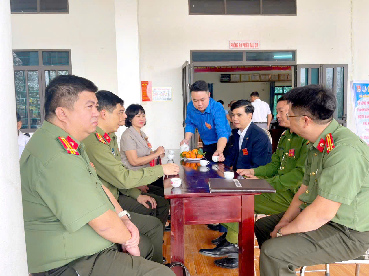 Tại buổi làm việc, đoàn công tác đã nghe lãnh đạo xã và lực lượng công an địa phương báo cáo về tình hình triển khai các nhiệm vụ bảo đảm an ninh, trật tự phục vụ bầu cử; công tác nắm tình hình địa bàn, phương án bảo vệ các khu vực bỏ phiếu, cũng như việc phối hợp giữa các lực lượng trong việc giữ gìn an ninh chính trị, trật tự an toàn xã hội trên địa bàn.