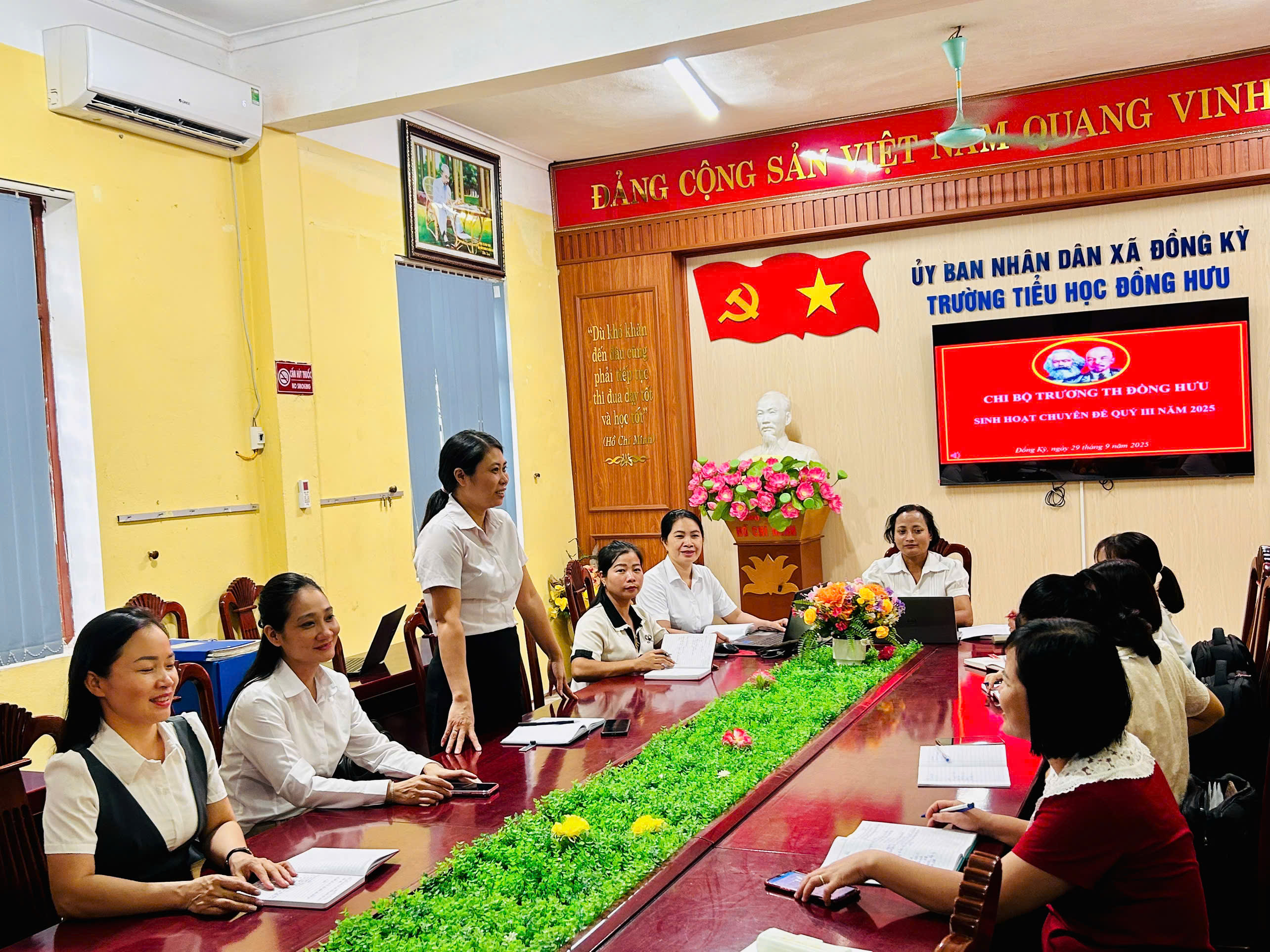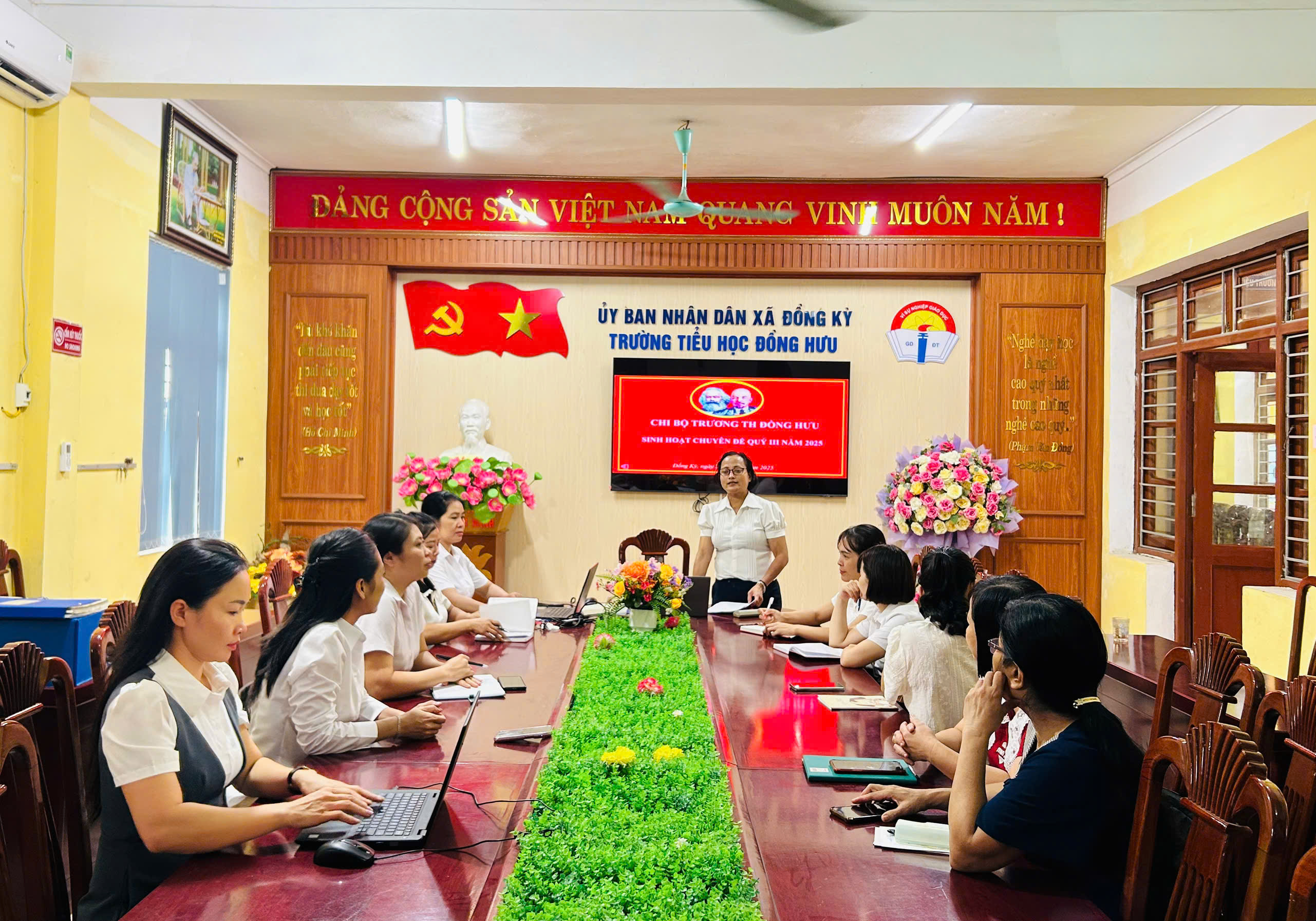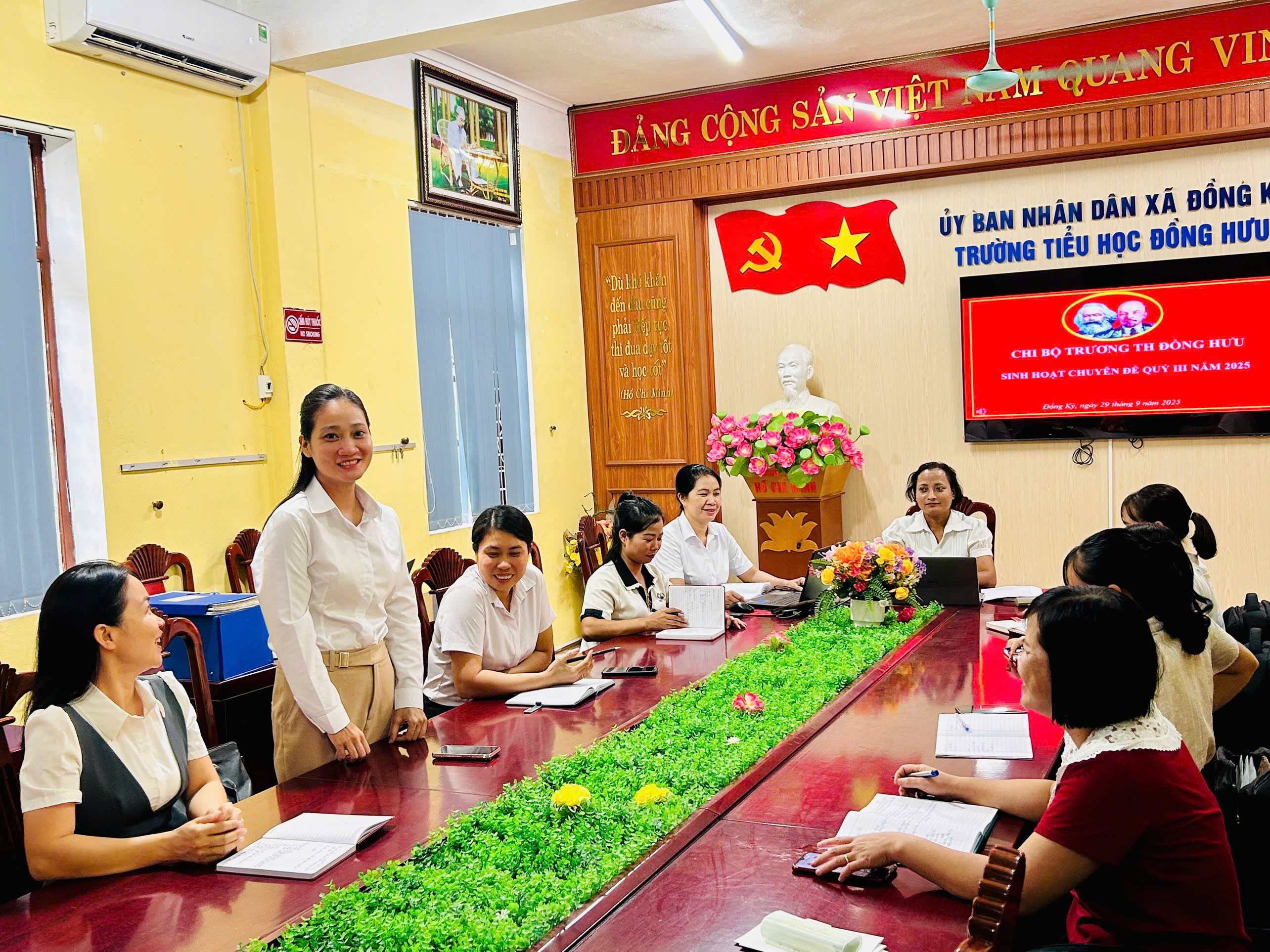 Ngày 29/9/2025 Chi bộ Trường Tiểu học Đồng Hưu đã tổ chức sinh hoạt chuyên đề quý III với nội dung: “Đẩy mạnh ứng dụng CNTT, chuyển đổi số và ứng dụngcông nghệ AI trong dạy học, giải pháp nâng cao chất lượng giáo dục và thực hiện phong trào ‘Bình dân học vụ số’”.