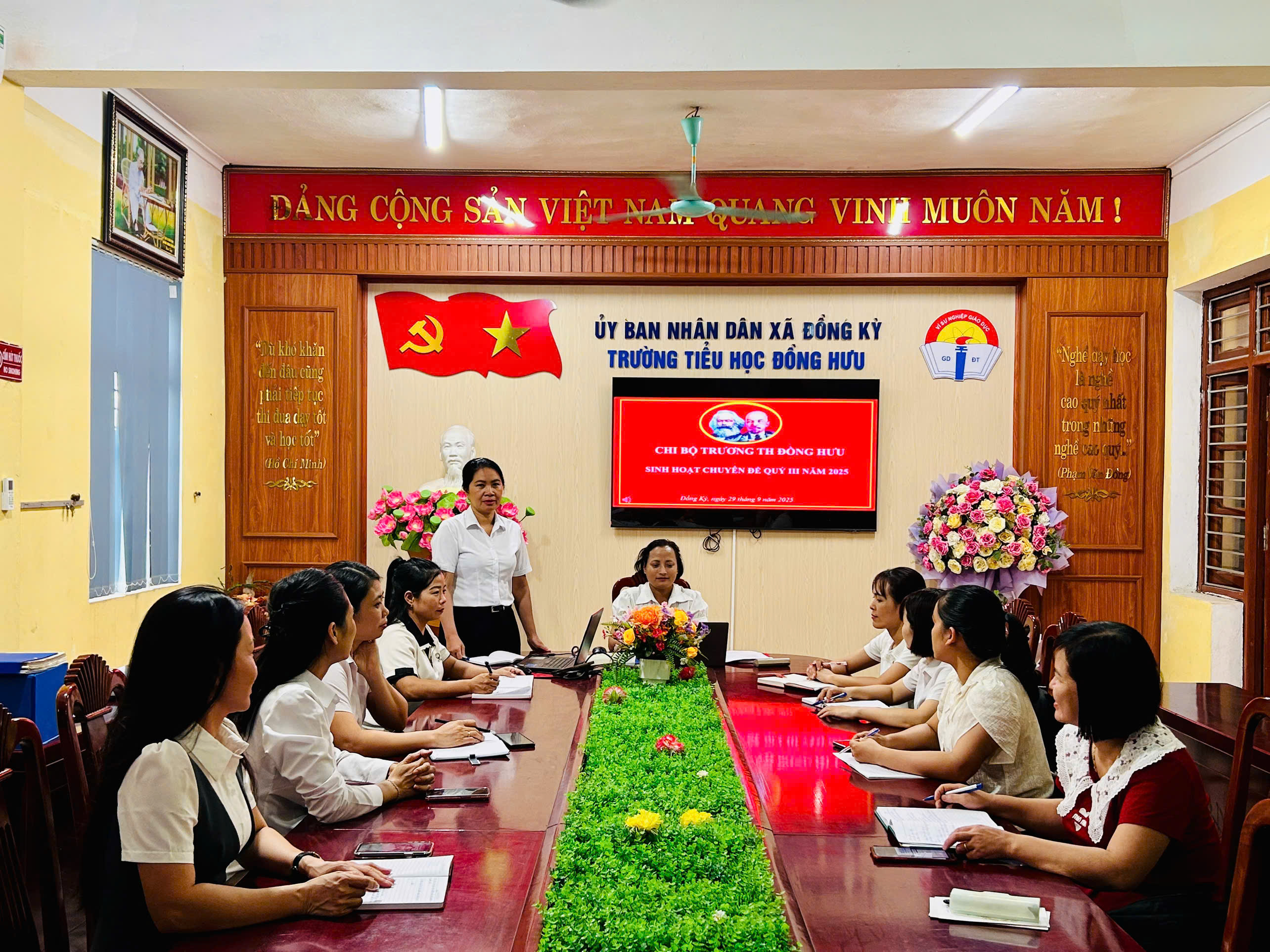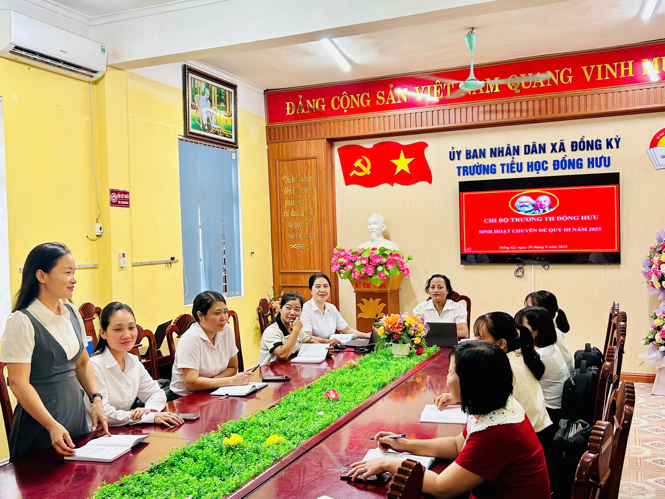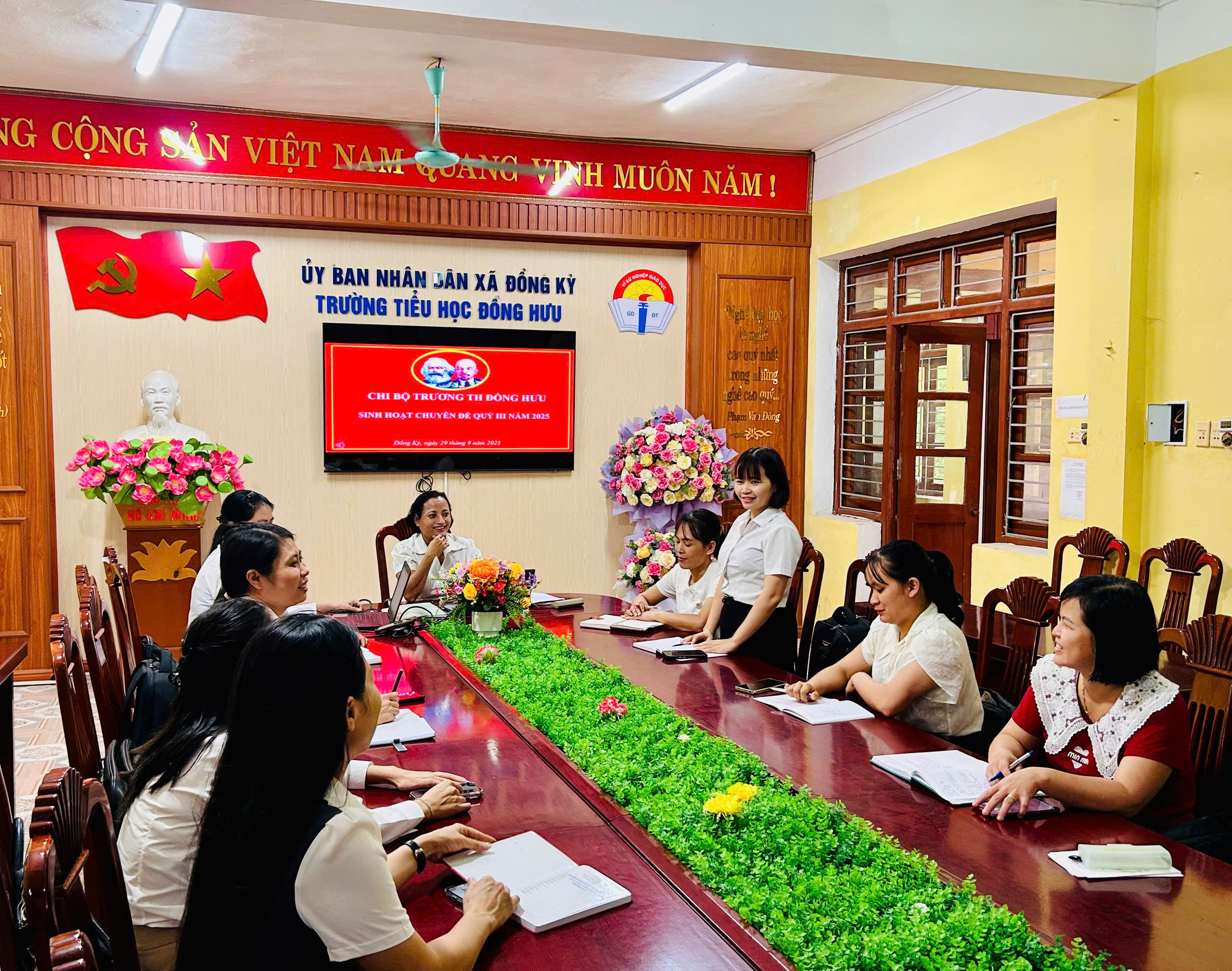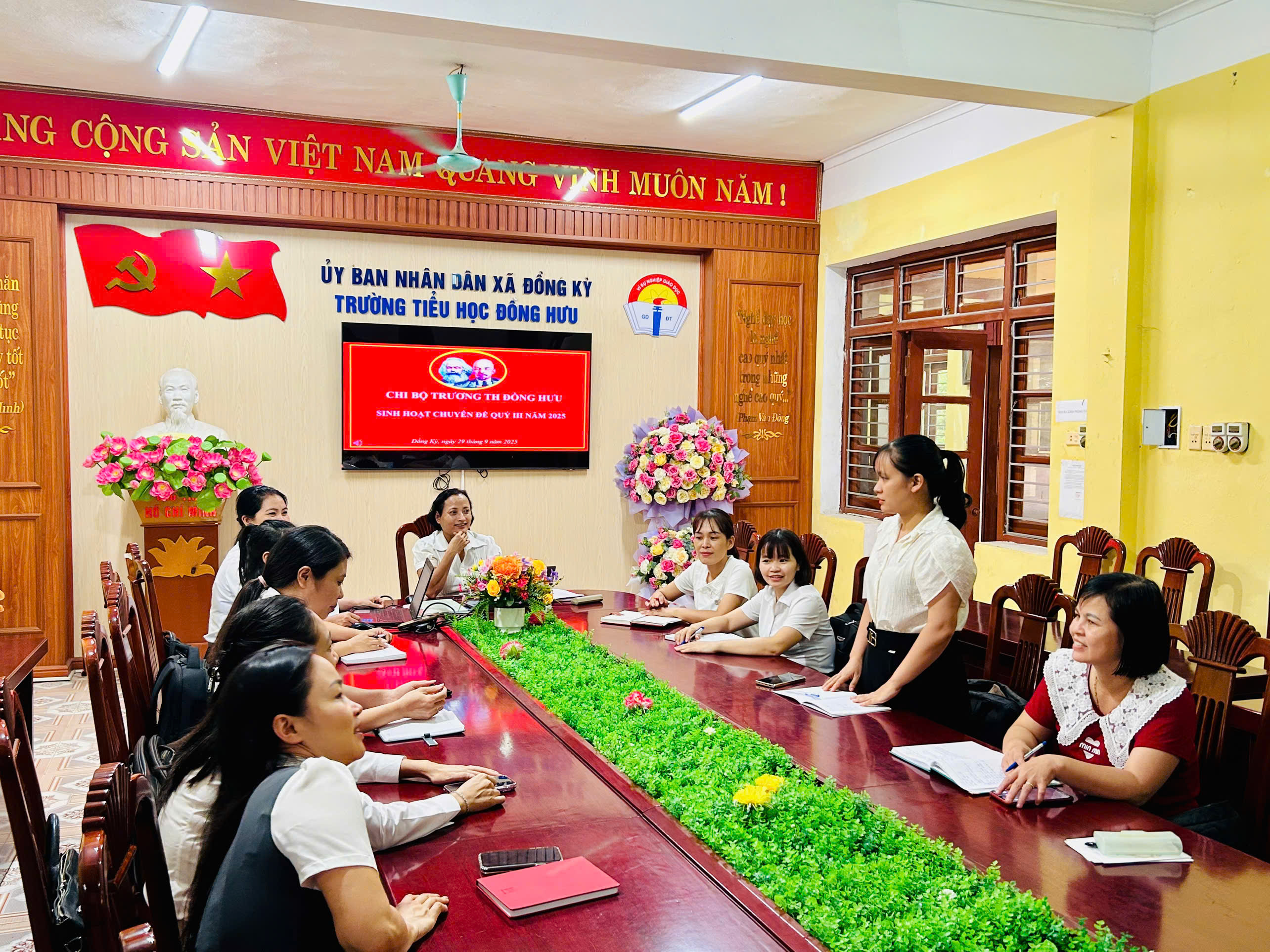 Ngày 29/9/2025 Chi bộ Trường Tiểu học Đồng Hưu đã tổ chức sinh hoạt chuyên đề quý III với nội dung: “Đẩy mạnh ứng dụng CNTT, chuyển đổi số và ứng dụngcông nghệ AI trong dạy học, giải pháp nâng cao chất lượng giáo dục và thực hiện phong trào ‘Bình dân học vụ số’”.