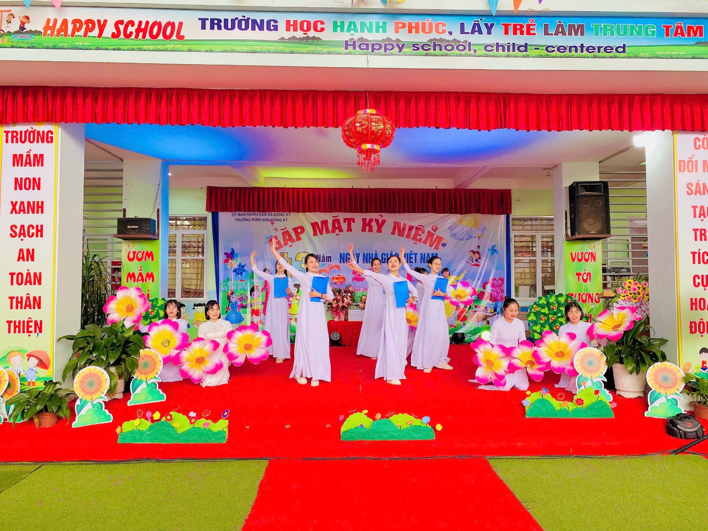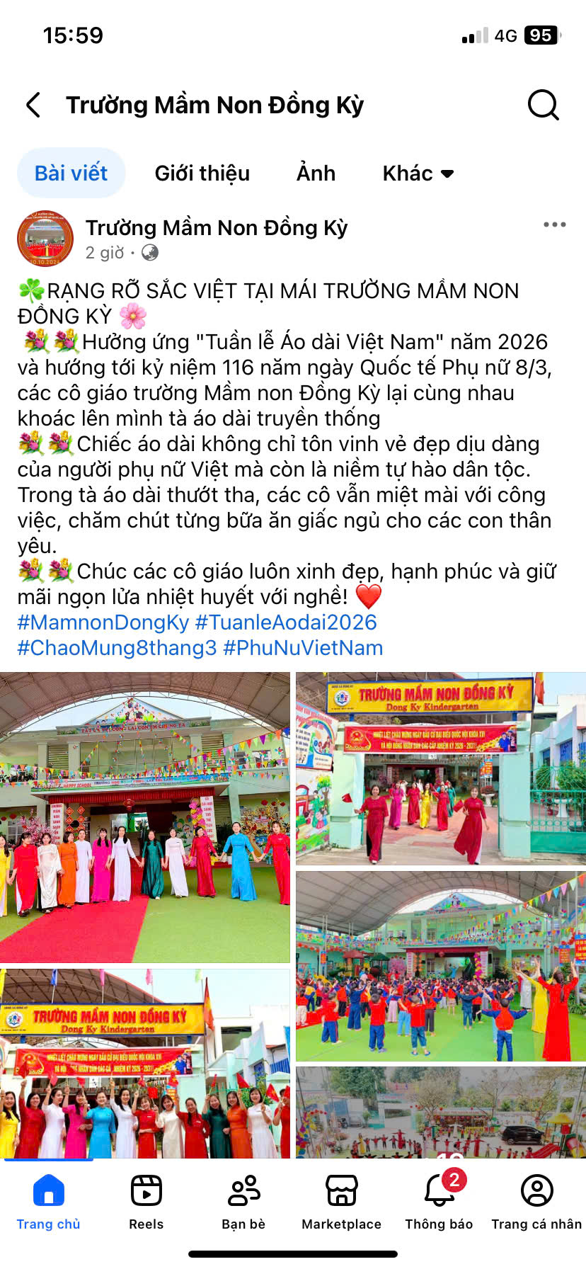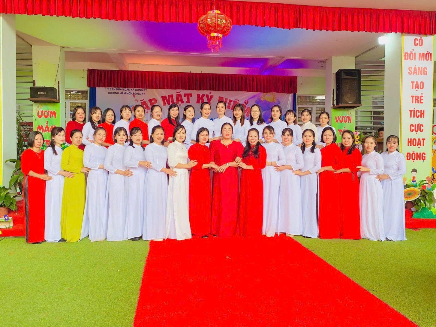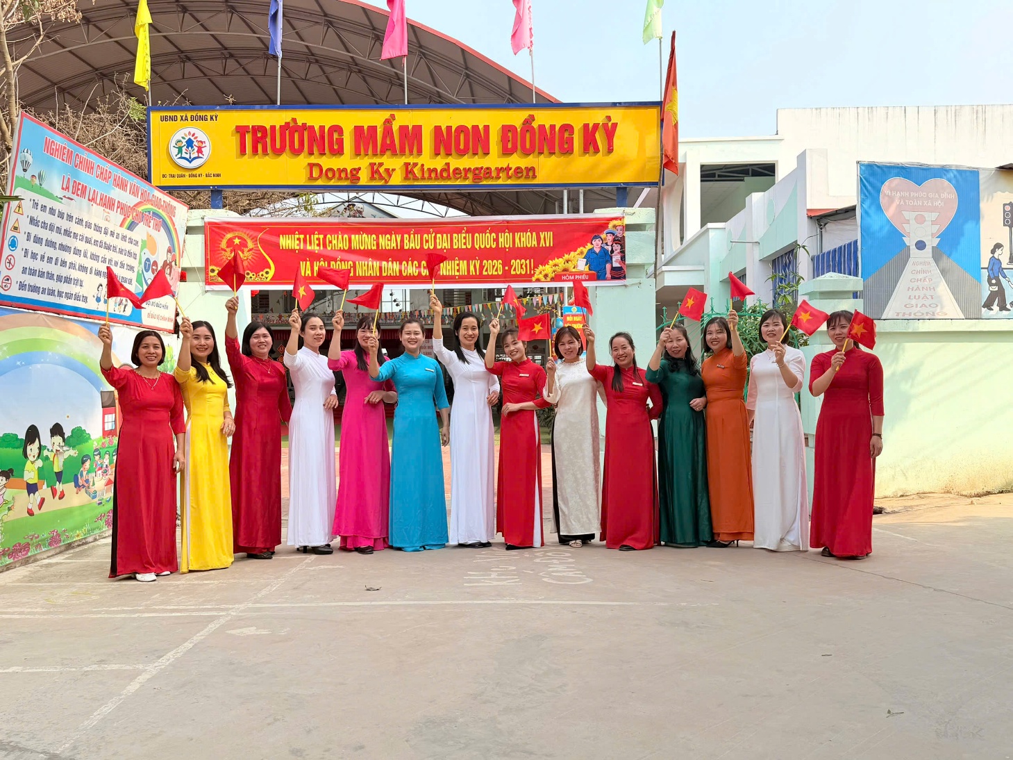 Hướng tới kỷ niệm 116 năm Ngày Quốc tế Phụ nữ (8/3/1910-8/3/2026), 1986 năm Khởi nghĩa Hai Bà Trưng, chào mừng cuộc bầu cử đại biểu Quốc hội khóa XVI và đại biểu Hội đồng nhân dân các cấp nhiệm kỳ 2026-2031, Trường Mầm non Đồng Kỳ đã phát động đến 100% giáo viên trong nhà trường mặc áo dài từ ngày 1/3 đến 8/3/2026.