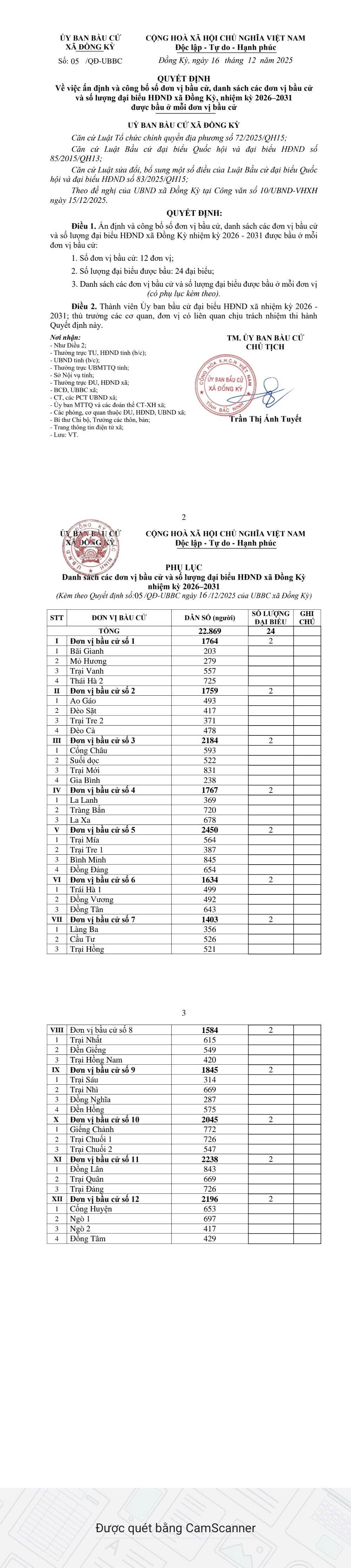 Quyết định số 05/QĐ-UBBC ngày 16/12/2025 của Ủy ban bầu cử xã Đồng Kỳ