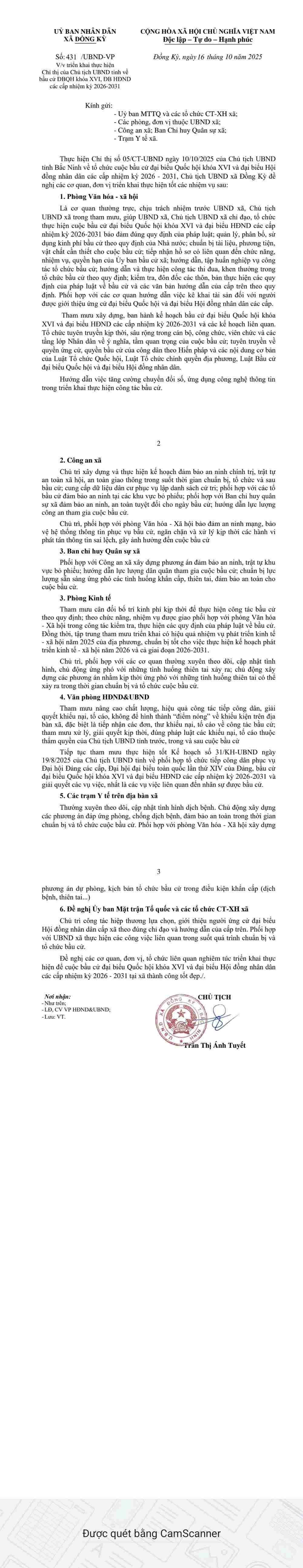 Công văn số 431/UBND-VP ngày 16/10/2025 UBND xã Đồng Kỳ