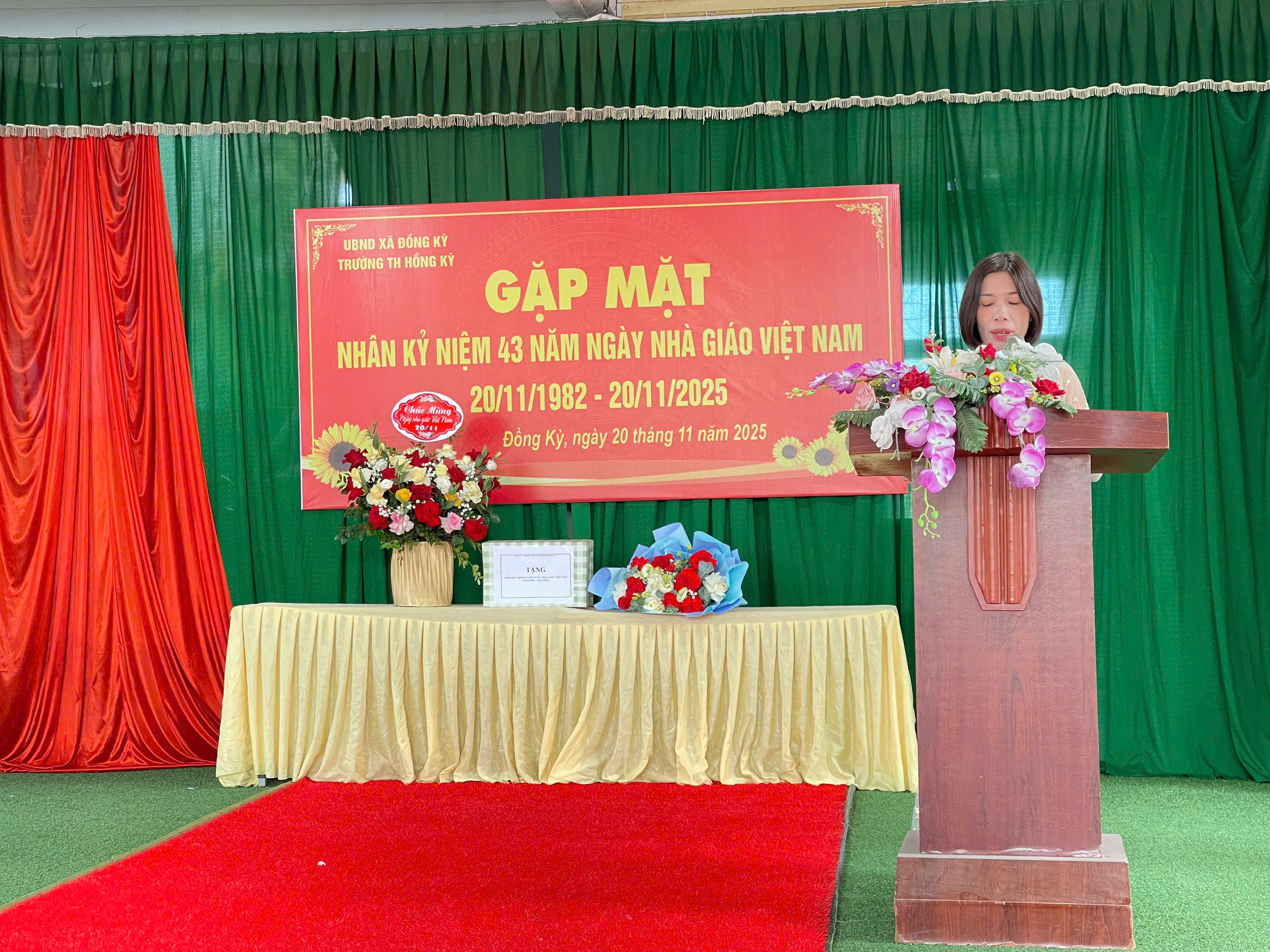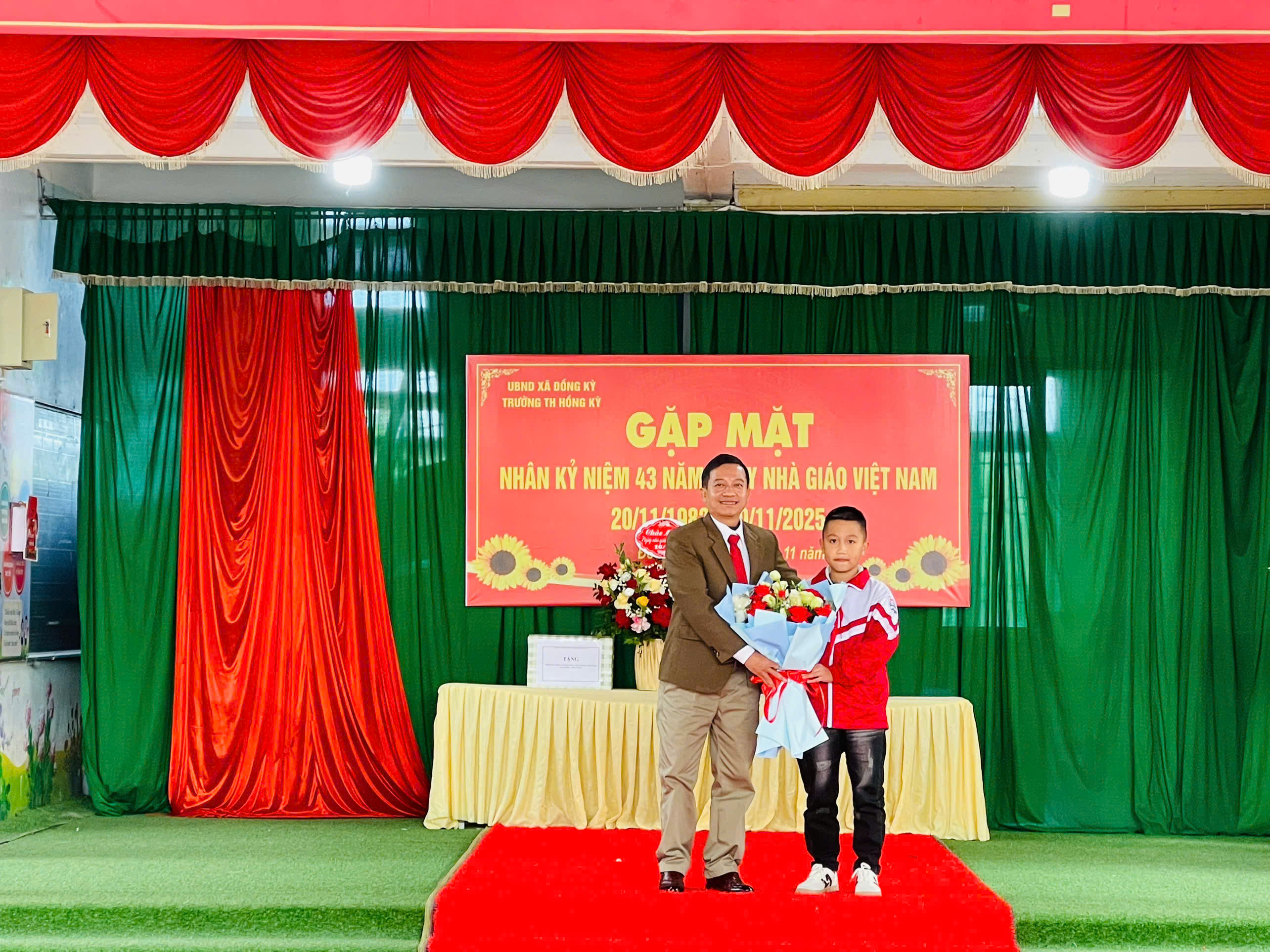 Hòa trong không khí hân hoan của cả nước hướng về ngày Nhà giáo Việt Nam 20/11/2025 - Ngày tri ân và tôn vinh công lao của các thế hệ thầy cô giáo đối với sự nghiệp “Trồng người”. Thực hiện kế hoạch số 41/KH-UBND ngày 28/10/2025 của UBND xã Đồng Kỳ về tổ chức các hoạt động chào mừng ngày Nhà giáo Việt Nam 20/11/2025, sáng thứ năm, ngày 20/11/2025, trường Tiểu học Hồng Kỳ đã long trọng tổ chức Gặp mặt nhân kỷ niệm 43 năm ngày Nhà giáo Việt Nam (20/11/1982 - 20/11/2025).