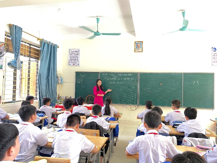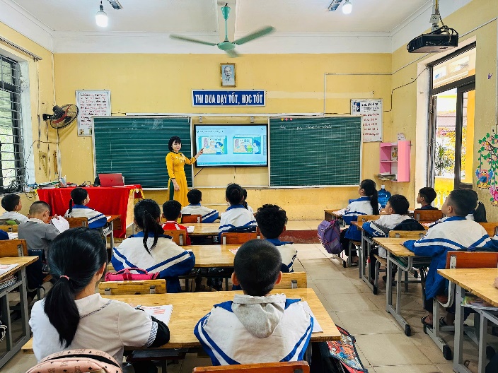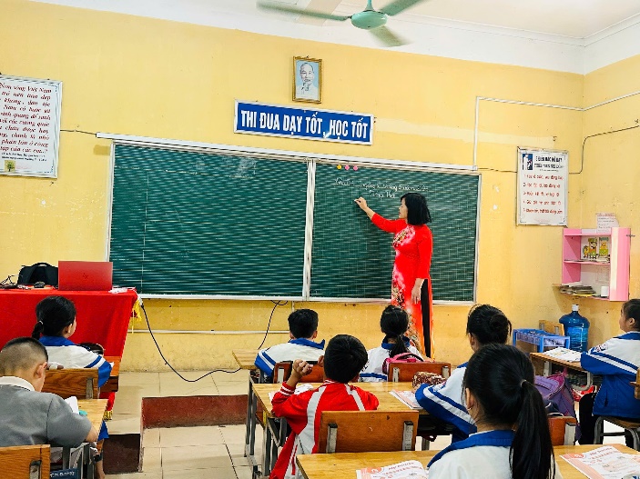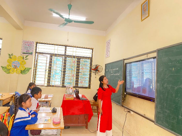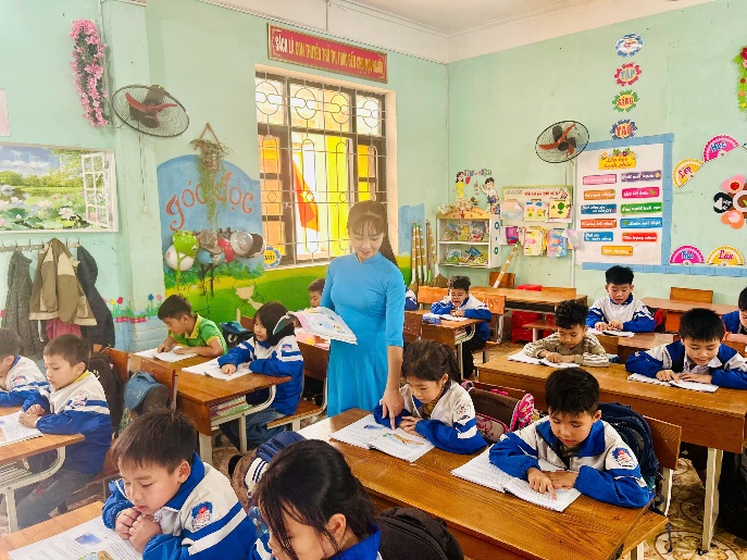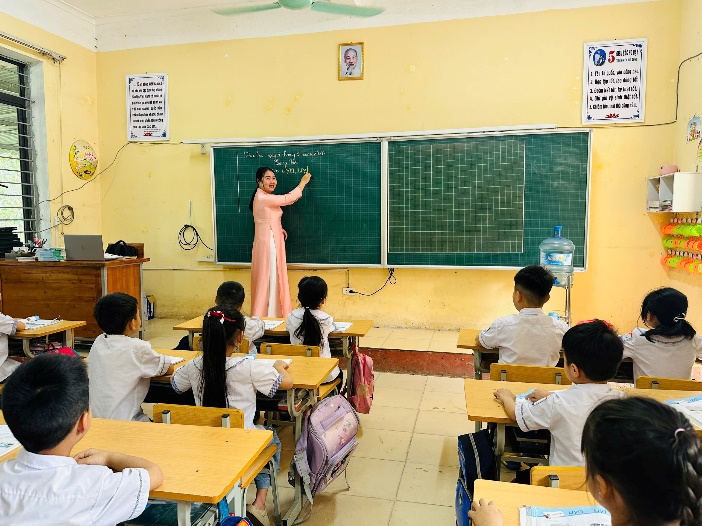 Hình ảnh: Các cô giáo duyên dáng trong tà áo dài bên bục giảng và các em