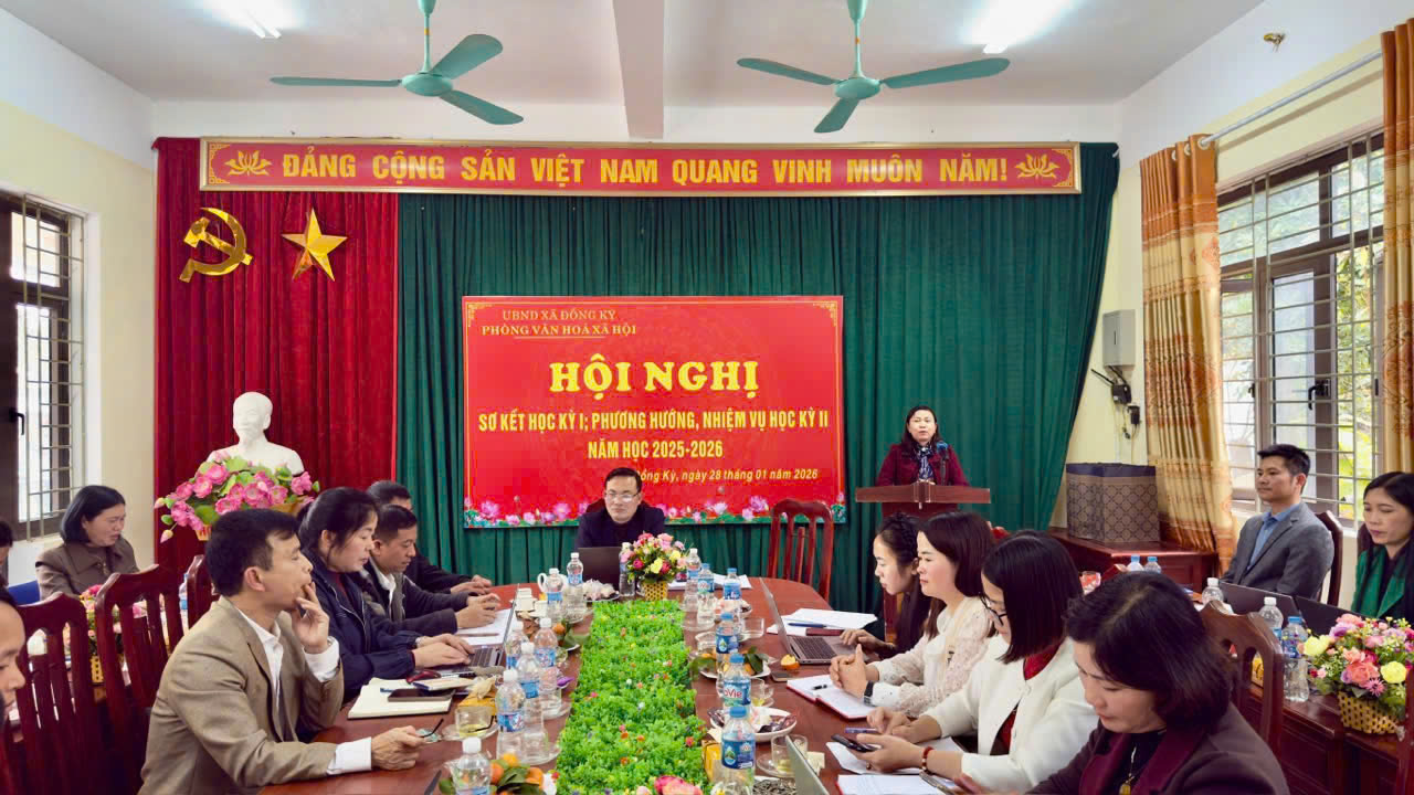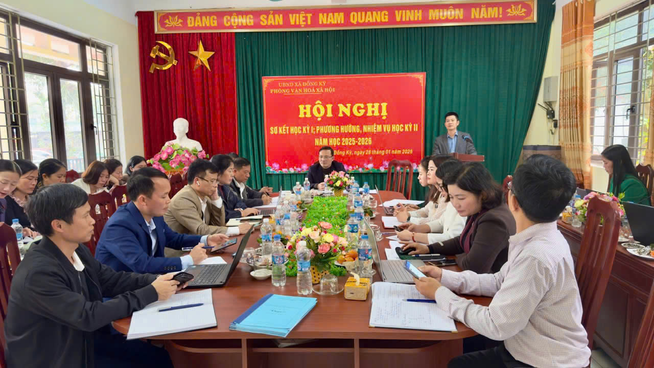 Ngày 28/01/2026, UBND xã Đồng Kỳ đã tổ chức Hội nghị sơ kết học kỳ I năm học 2025–2026 nhằm đánh giá kết quả thực hiện nhiệm vụ học kỳ I, đồng thời đề ra phương hướng, giải pháp thực hiện nhiệm vụ học kỳ II.