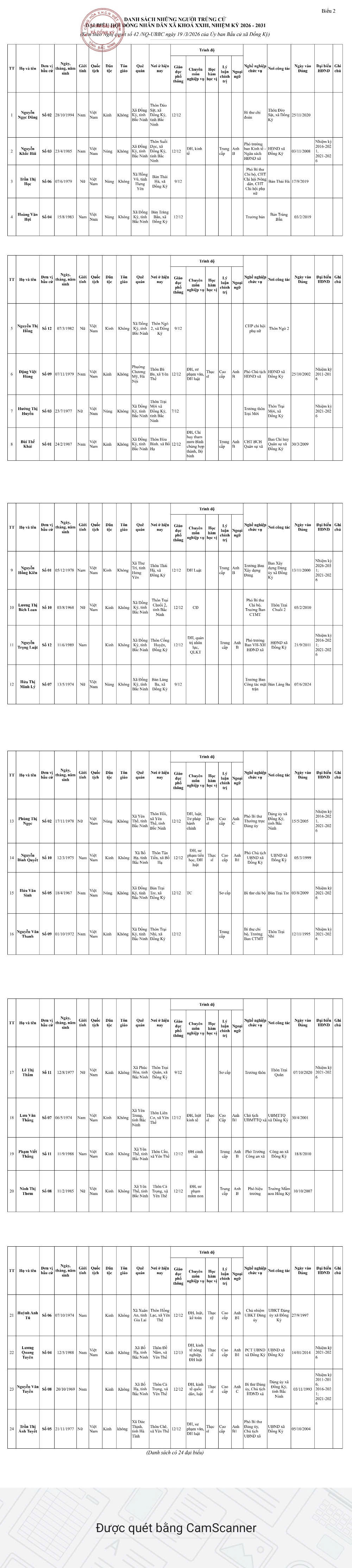 Phụ luc 02 kèm theo Nghị quyết số 42 /NQ-UBBC ngày 19 /3/2026 của Ủy ban bầu cử xã Đồng Kỳ